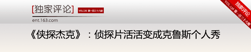《侠探杰克》是一部带有浓重个人英雄主义色彩的老派硬汉侦探片,汤姆·克鲁斯用自己二十年不变的经典POSE把一部信息量很大的侦探片活活变成了他的个人秀。而在原著小说中亦正亦邪的“杰克·李奇”也被汤姆·克鲁斯演绎成了一个具有史泰龙、施瓦辛格或者布鲁斯·威利斯风采的80年代全能硬汉,而且阿汤哥还不具备以上老几位玩幽默的美德。