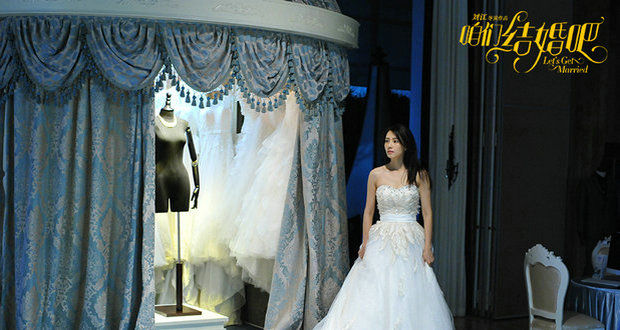 莫小棋扮演高圆圆婚纱店的性感顾客,大婚那一天,抛绣球的一刹那她的裙子暴开,后背春光尽显。